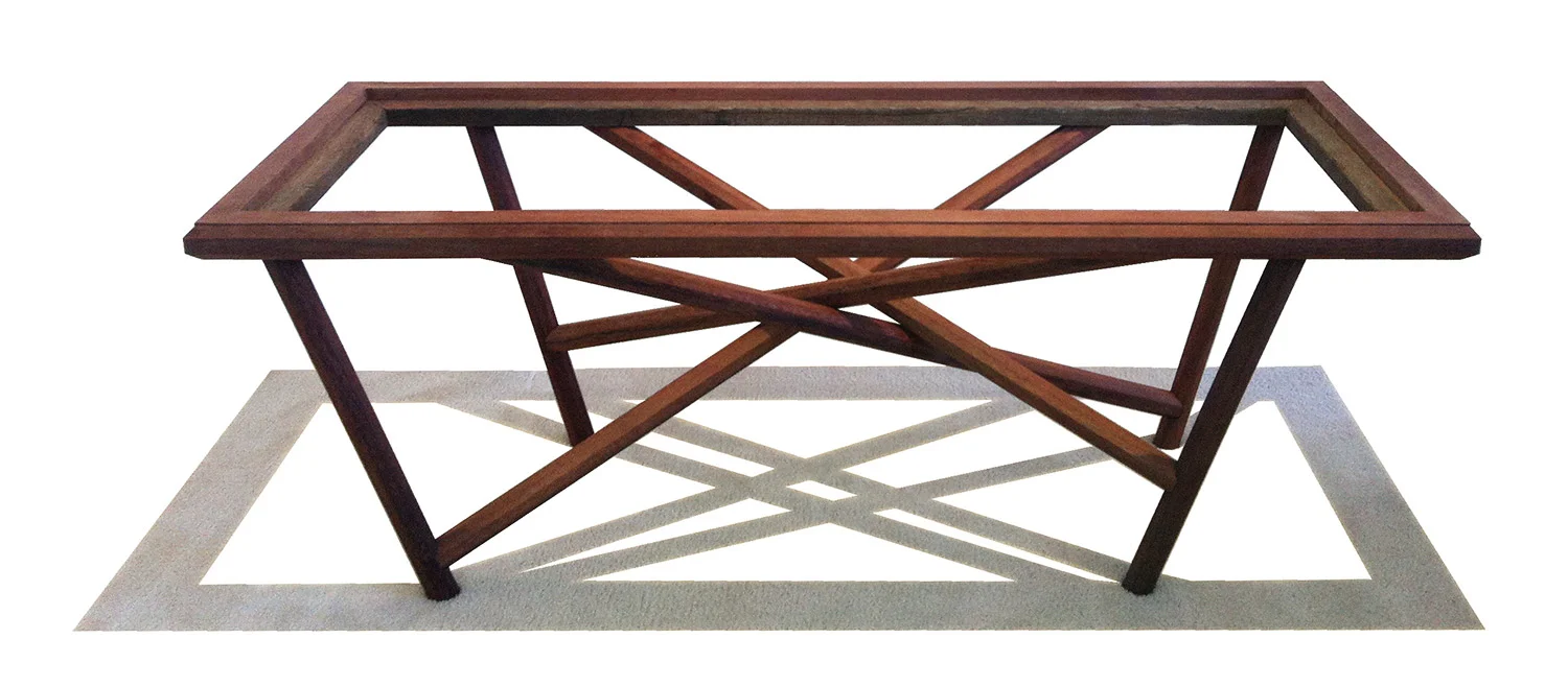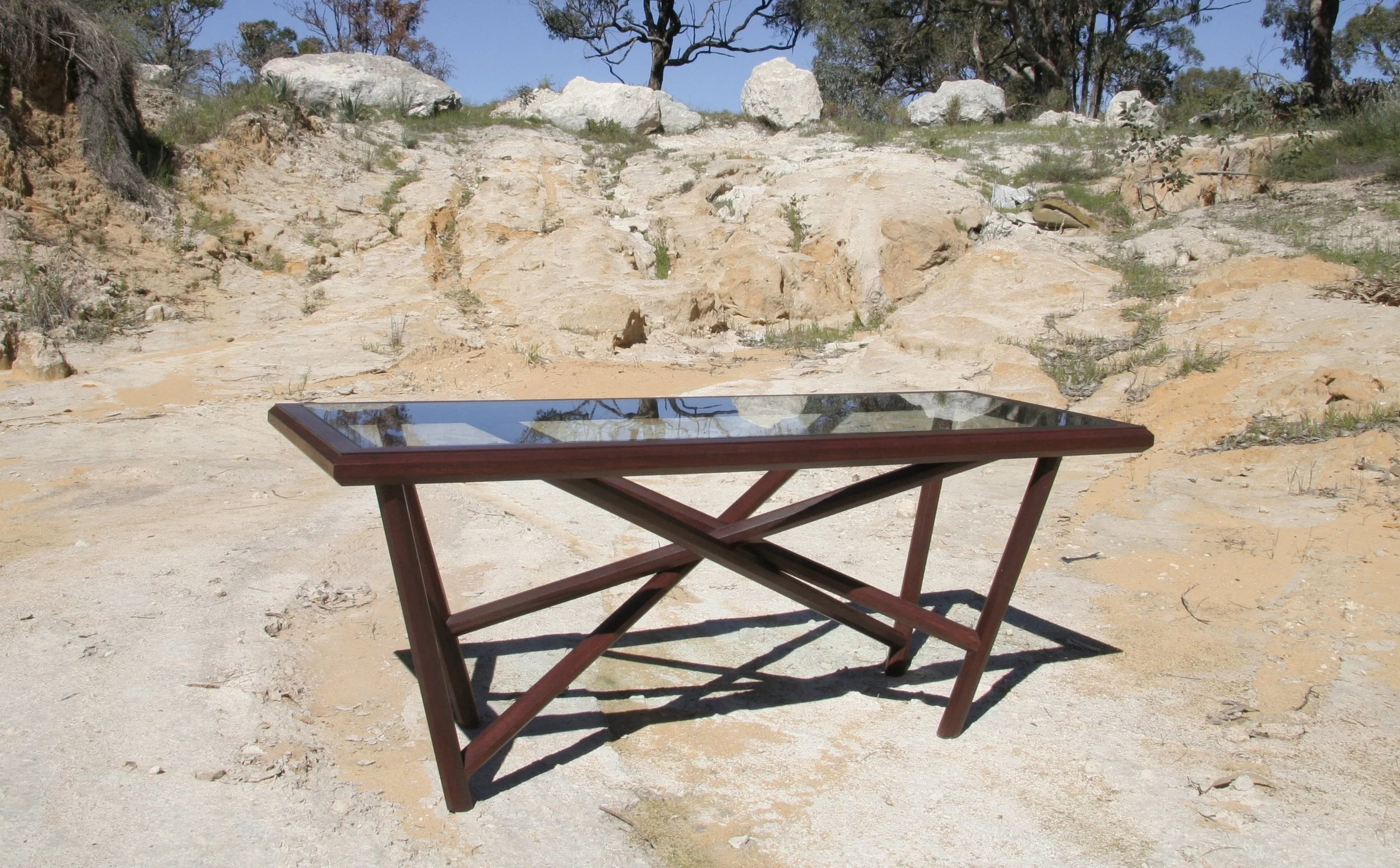 The Diamond in the Rough coffee table was produced using 100% reclaimed materials: some fencing posts, an old step and a discarded window pane.